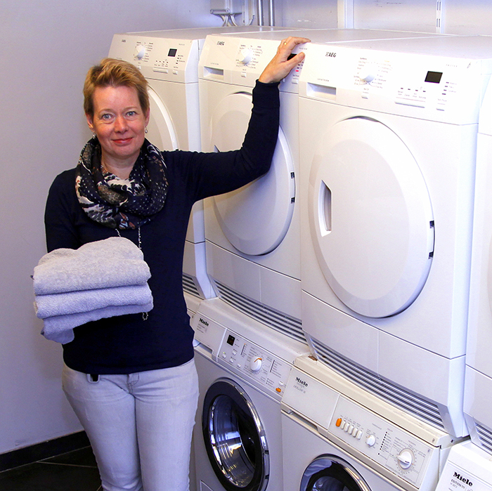 Yvonne ontzorgt haar klanten van hun was; alles wordt opgehaald, gewassen en netjes gevouwen en gestreken.